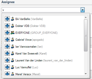 In the Assignee section, type in the name of the user or group and press Enter. Alfred Desktop will present you with a selection of users and groups that match your search criteria