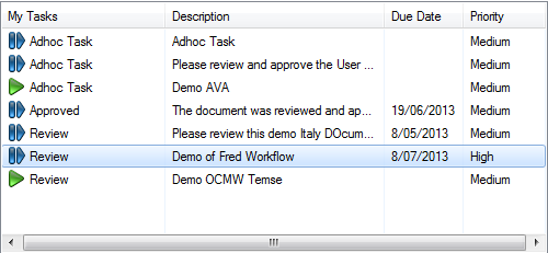 The My Tasks list lets you view and manage the tasks that are assigned to you. You can sort the list of tasks by clicking on the column header. Selecting a task will show the details of the task in the right-hand pane.