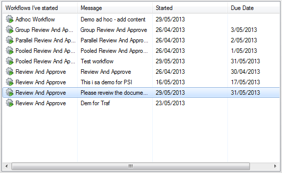 In the list Workflows I’ve Started, select the workflow you want to review in detail.