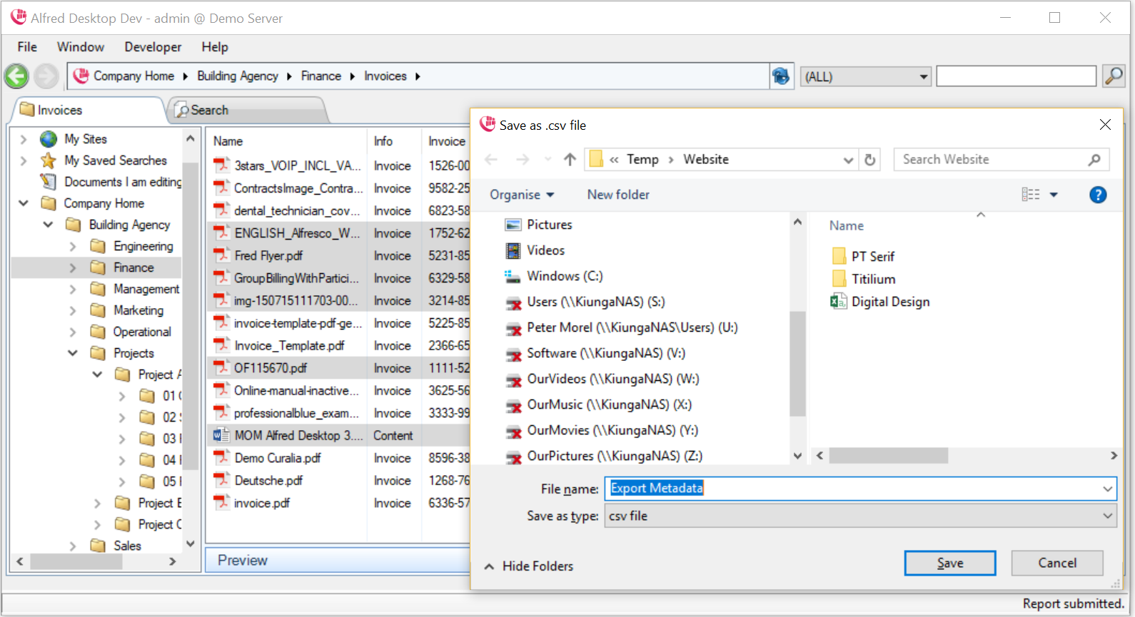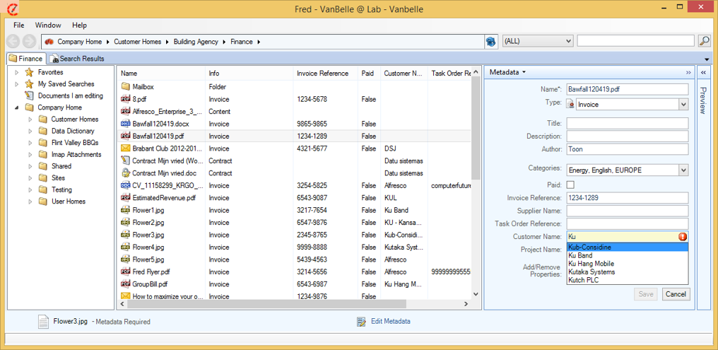 • The document type cannot be generic (e.g. Alfred Desktop Document, Company Document) and must be specifies (e.g. Invoice, Project, Minutes of Meeting). The list of document types that are considered ‘generic’ are defined on the server.
