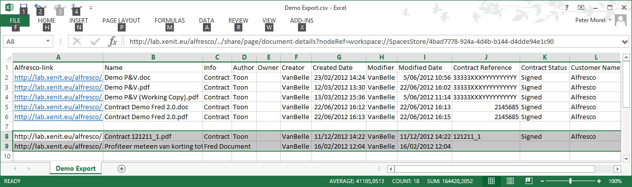 You can now add additional records to the list by selecting new objects and using the shortcut CTRL + C or the COPY command to copy the metadata to the desktop clipboard. You can then paste the metadata values to an Excel table.