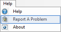 To help the user report a problem, a ‘Report A Problem’ command has been added to the Help menu. (Should the content below have a pink background?)